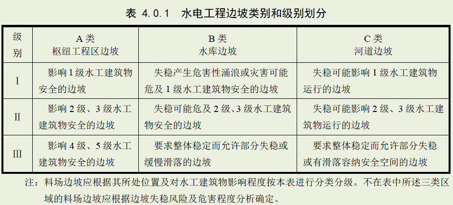 为规范水电工程边坡设计,水电行业制定了《水电工程边坡设计规范》《水电工程料源选择与料场开采设计规范》等规程规范,对枢纽区边坡、水库区边坡、下游河道边坡、料场边坡不同工况下的稳定安全控制标准做了规定。在具体设计中,需根据对边坡安全程度的期望选择特定的安全系数值。不同边坡设计对边坡安全程度的期望有何差异,结合工程实际如何考虑选取,有必要进行梳理分析。