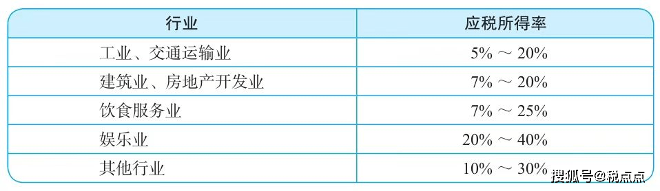 ■核定征税的方法。这种征税的方法相信我们大家都不陌生了,对于增值越高的业务,核定征税的方法越能降税负。核定征收应纳税所得额计算公式及税率如下: