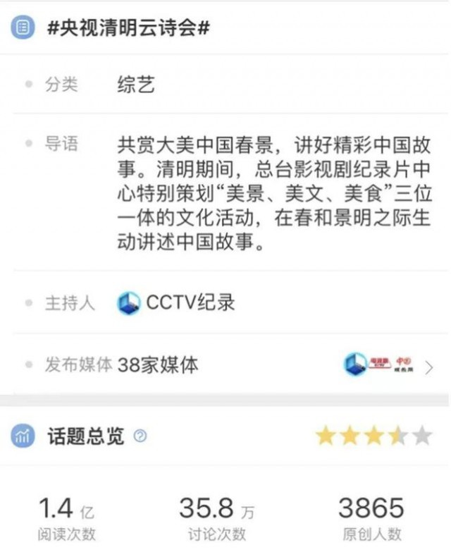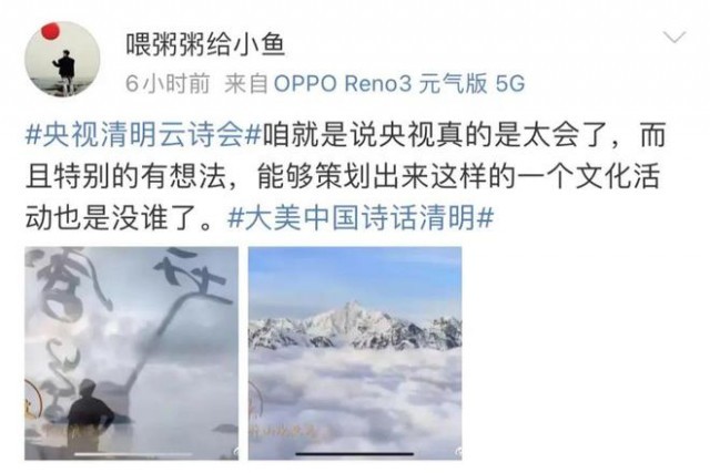 2022年清明节推出的《大美我国诗话清明》融媒体直播便是例子。该节目携手语言学家、纪录片主创、书法家、表演艺术家、青年艺人、大学生等各界嘉宾,用7小时掩盖祖国各地春日盛景的慢直播,加3小时诗意盎然的移动直播,10小时不间断地约请观众共赴一场诗意之约,在赏美景、品美食、读美文的过程中,领会山河之美,寻找人间烟火,感触我国浪漫,取得了广泛好评。